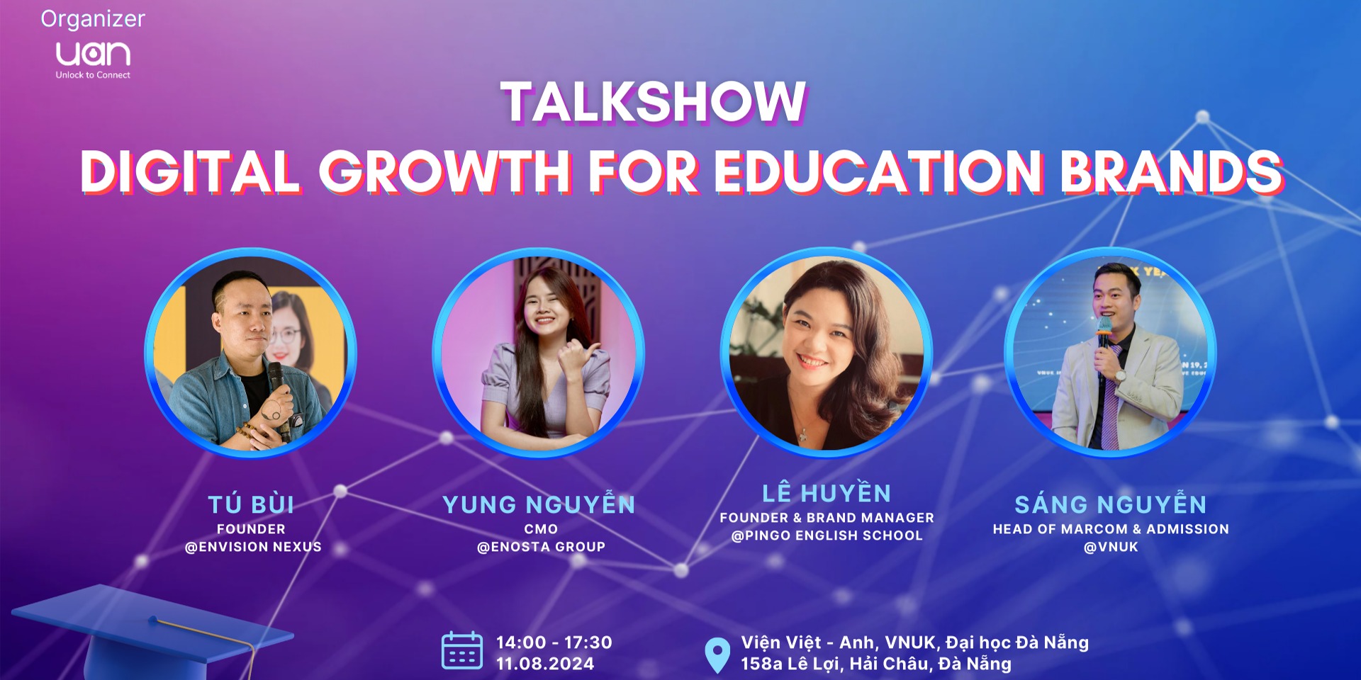 Điều này tạo ra một thách thức không hề nhỏ đối với những Marketers, đặc biệt là khi triển khai truyền thông cho các thương hiệu giáo dục. Hiểu được điều đó, UAN Đà Nẵng đã đem đến Talkshow “DIGITAL GROWTH FOR EDUCATION BRANDS”, được tổ chức vào ngày 11.08 để giúp bạn ‘’chuyện to nói nhỏ’’ mà không phải ai cũng biết.