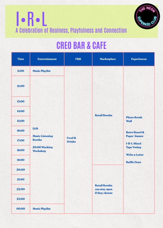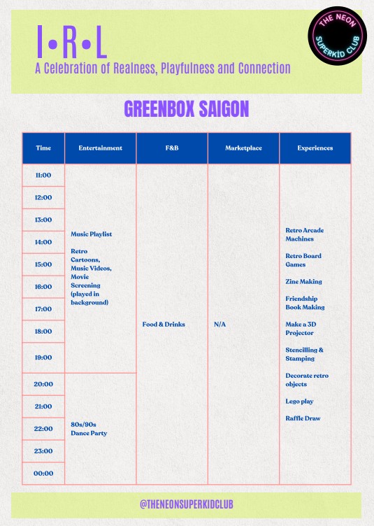 I•R•L là điểm hẹn trọn ngày cho những ai thấy mình tràn đầy sức sống khi được kết nối trực tiếp, thay vì mải miết lướt những nội dung ảo trên mạng xã hội.