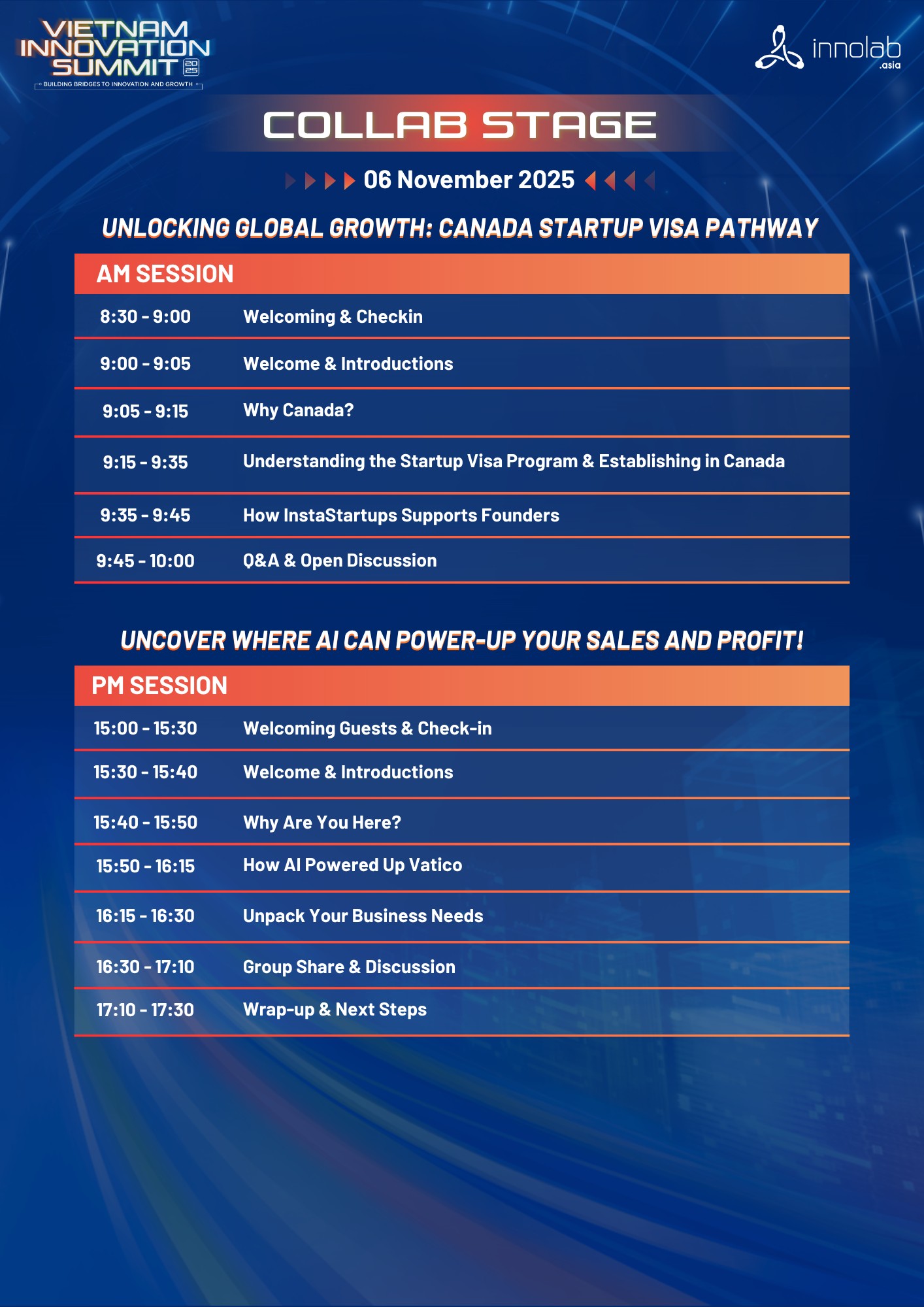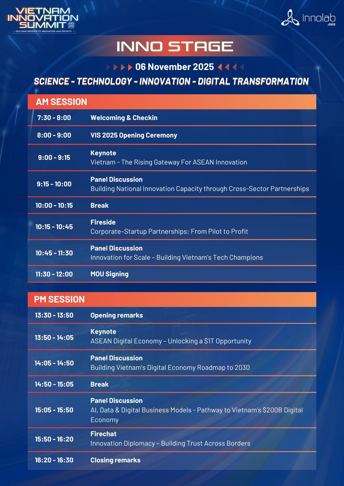 Hội nghị Thượng đỉnh Đổi mới Sáng tạo Việt Nam (Vietnam Innovation Summit - VIS) là sự kiện thường niên do InnoLab Asia tổ chức, quy tụ các nhà hoạch định chính sách, cơ quan chính phủ, quỹ đầu tư khu vực, các tập đoàn hàng đầu, công ty khởi nghiệp đang phát triển nhanh, các vườn ươm khởi nghiệp và những người có ảnh hưởng trên toàn thế giới.