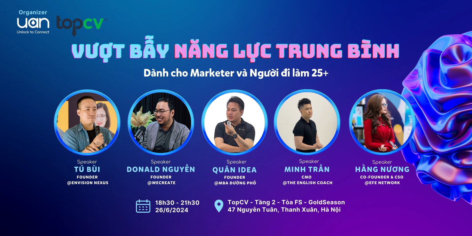 Sau thành công tại TP HCM với gần 130 khán giả, UAN sẽ tiếp tục đồng hành sẽ tiếp tục đồng hành cùng các marketers tại Hà Nội trên hành trình "VƯỢT BẪY NĂNG LỰC TRUNG BÌNH".