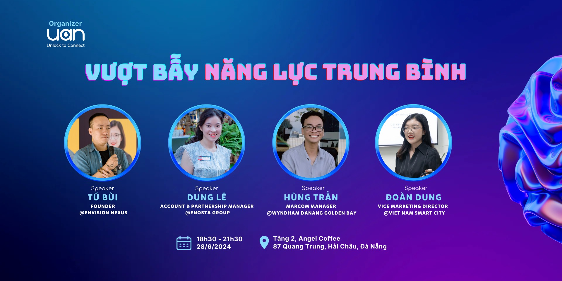 Hãy tham gia sự kiện "Vượt Bẫy Năng Lực Trung Bình” Dành Cho Marketers & Người Đi Làm để được lắng nghe và học hỏi kinh nghiệm từ những speaker là những người có thành tựu đáng nể trong sự nghiệp và đã từng “vượt bẫy” thành công.